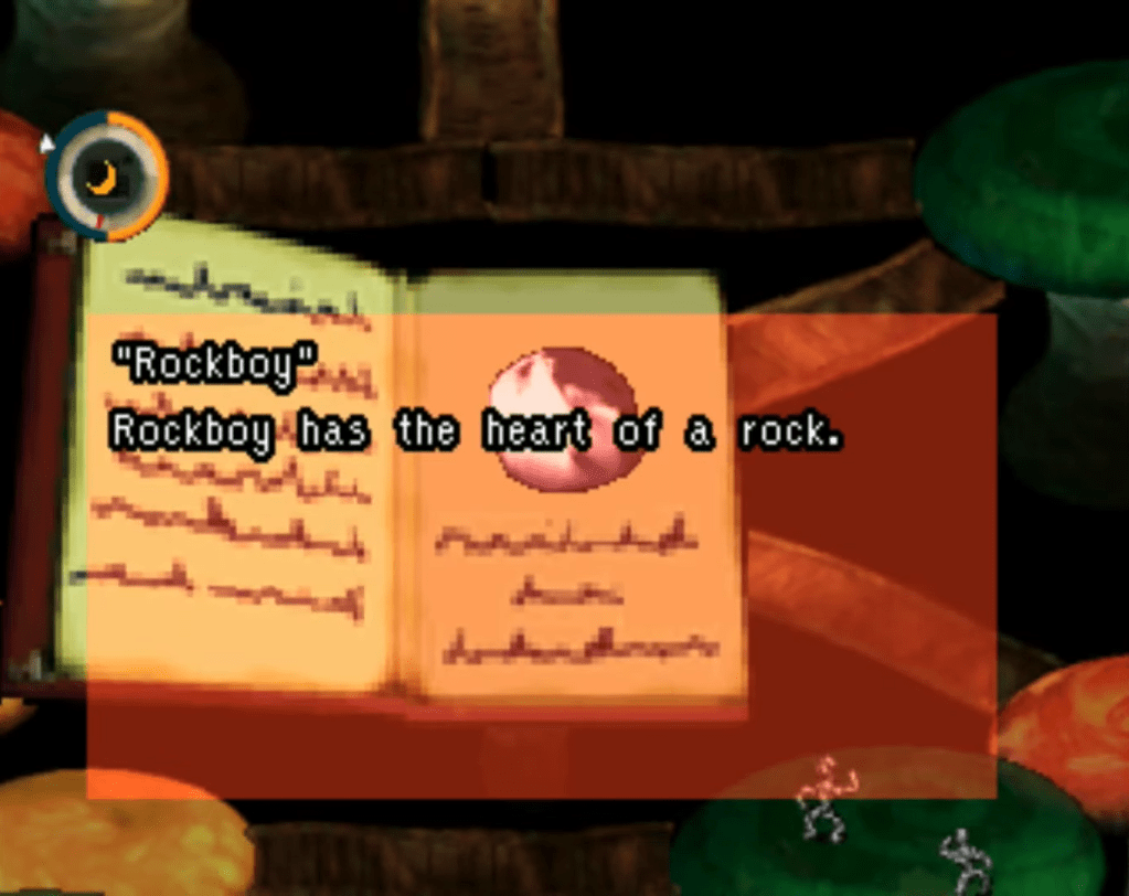 In moon, there is no battling. Just as Ralsei had insisted in Deltarune, this is a world where you never have to fight. Instead, you follow the trail of destruction left behind by the Hero, cleaning up the mess he’s made and rescuing the creatures he’s defeated. You’ll find the clay figure corpses of those the Hero has defeated littered across the world. Their souls now wander, separated from their remains. You reunite them by catching the souls. Sometimes, this is simple: you find the soul in a field, and you just walk up and grab it, causing it to drift back to its body. Other times, this is much more complicated, and involves teaching dogs summon magic, intimidating shyrocks to move, or finding the sad song of a harpflower. You know what they say: you tell a dog to summon and his bark might call a little bird. But teach a dog to summon, and he might call upon the soul of Snacky the snake into the open, allowing you to catch it. I have heard this turn of phrase said many times.