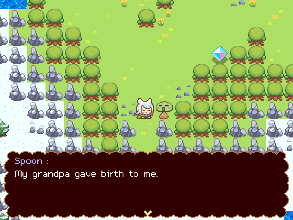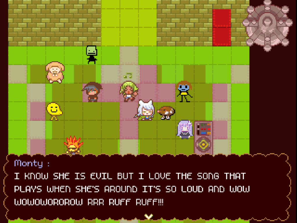 This is what Catgirl has forced me to reckon with. Catgirl, a two hour RPG developed by an artist named City Girl, is an incredibly free, very funny, extremely 2 hour game about saving your doggy friend Mopmop. The premise is not very complicated, and to its benefit, neither is the rest of the game: a pretty demon lady is following you around and trying to steal all the art in the world. Mopmop loves painting, so the pretty lady went ahead and stole Mopmop too. In an effort to save her weird little dog, Catgirl has to get strong enough to defeat the demon lady Yumi and save artistic expression itself from her grasp. That’s really all there is to it, and I feel Catgirl is almost about the fact that it need not be any deeper than that. The story largely gets out of its own way in order to let the real stars of the show take the center stage; its humor, its banging original soundtrack, and its big cast of colorful and weird women. City Girl is a musician making what I can mostly describe as “chill music to relax and study to.” What she’s made here is like a terrific little album which she’s attached a terrific little game to. It’s mostly retro-style 20th century RPG inspired music with a lot of modern polish, but every now and then it seems to allow itself to go sickos. Yumi’s theme, for example, is a reoccurring song that quickly became one of my favorites: it’s a deep and intoxicating percussive and trap inspired beat with a slightly warped 8 bit melody overlaid on top and it works for me every time I hear it.